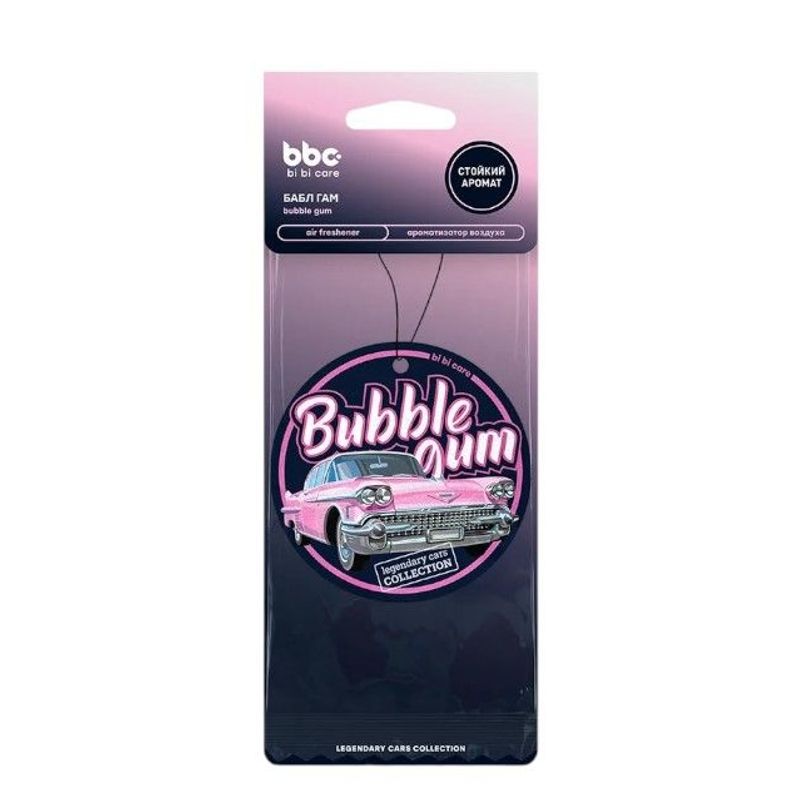 BiBiCare 4451 aromatizant din carton Bubble Gum — aromatizant din carton pentru aer cu aromă „Bubble Gum”, destinat împrospătării aerului din habitaclul mașinii, precum și din orice încăperi mici (casă, birou).