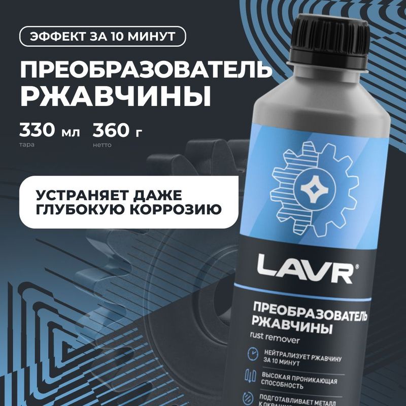 LAVR Ln1435 este un convertor de rugină cu un volum de ~330 ml, destinat îndepărtării eficiente a coroziunii (ruginii) de pe suprafețele metalice, pregătirii metalului pentru reparații ulterioare, amorsare și vopsire. Compoziția acționează rapid (≈ 10-15 minute), are o capacitate de penetrare ridicată și este potrivită pentru toate tipurile de piese metalice ale mașinii.
