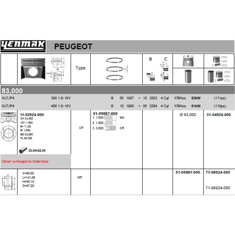 • Peugeot 306 97-03; 406 95-04 1.8i 16V